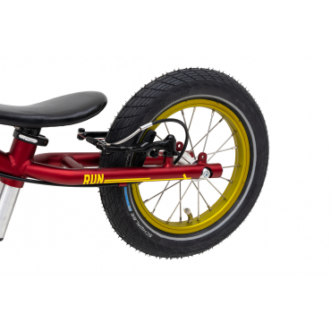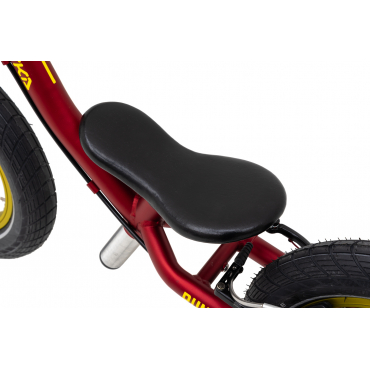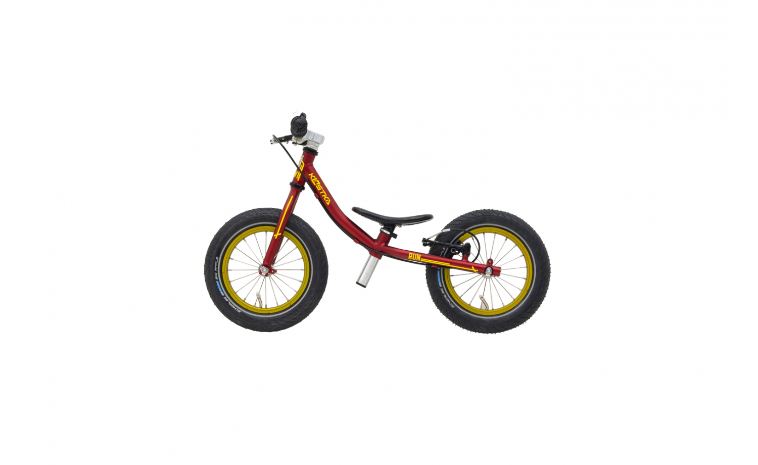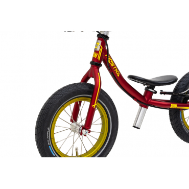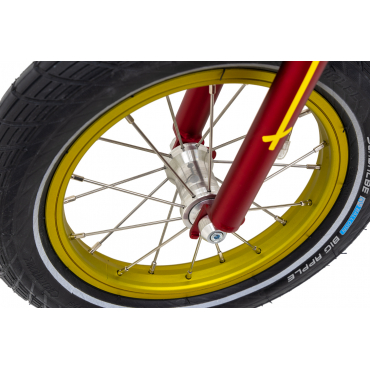 Das innovative, konische Rahmen- und Gabeldesign, das auf 65 mm breiten Kostka-Naben mit Industrielagern aufgebaut ist, bietet einen erweiterten Rückfederungsraum und verhindert ein mögliches Einklemmen der Knöchel. Der Rahmen und die Gabel aus Chrom-Molybdän dämpfen auf natürliche Weise Vibrationen während der Fahrt und zeichnen sich gleichzeitig durch hohe Festigkeit und Haltbarkeit aus. Mit einem geringen Gewicht von nur 3,7 kg ist unser Balance-Bike optimal an die Bedürfnisse von Kindern angepasst, was zu einem sicheren und angenehmen Fahrgefühl beiträgt.