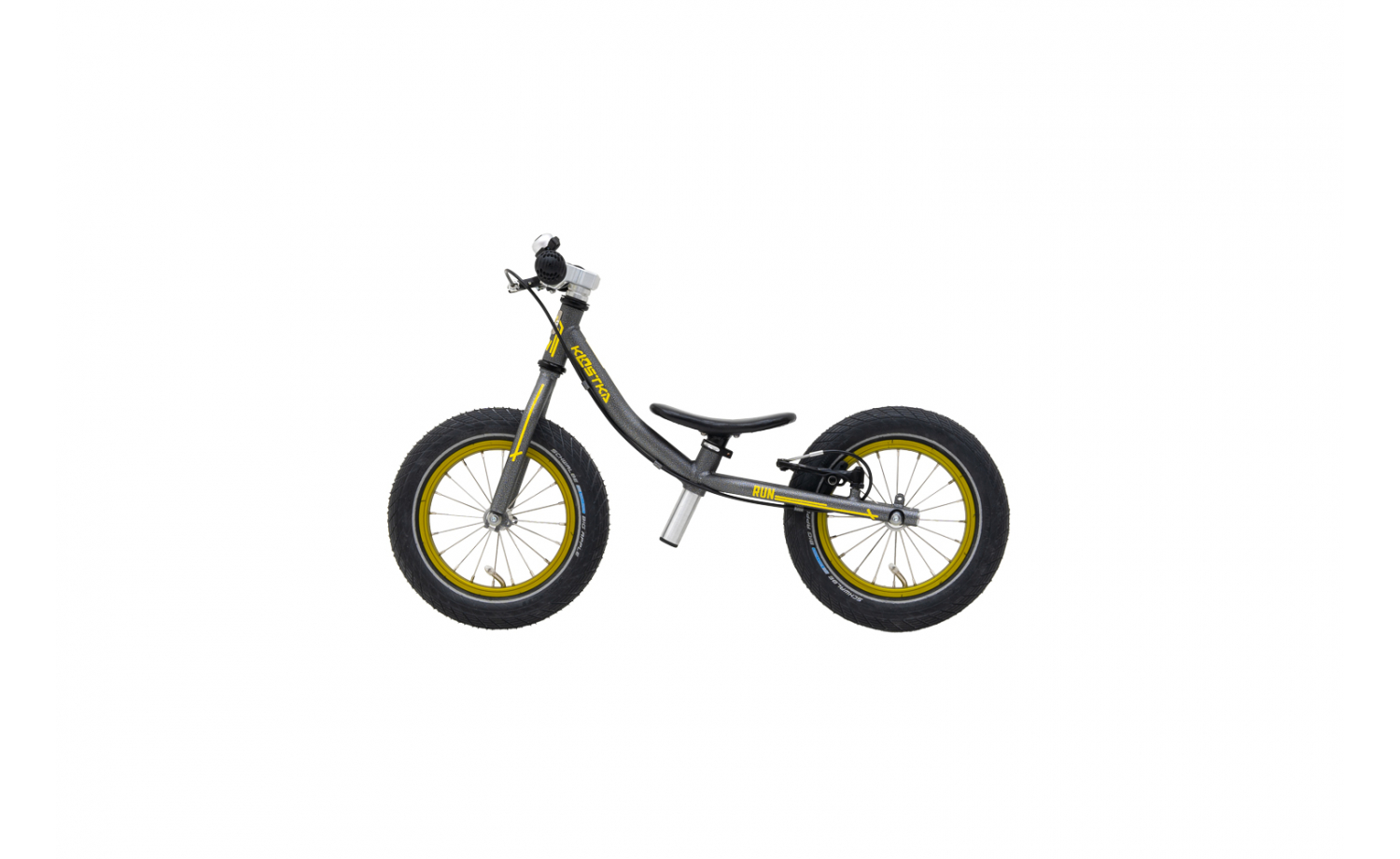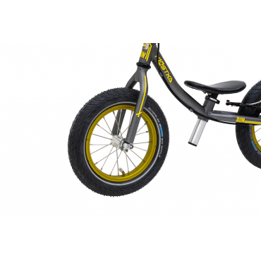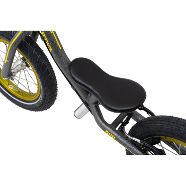 Das innovative, konische Rahmen- und Gabeldesign, das auf 65 mm breiten Kostka-Naben mit Industrielagern aufgebaut ist, bietet einen erweiterten Rückfederungsraum und verhindert ein mögliches Einklemmen der Knöchel. Der Rahmen und die Gabel aus Chrom-Molybdän dämpfen auf natürliche Weise Vibrationen während der Fahrt und zeichnen sich gleichzeitig durch hohe Festigkeit und Haltbarkeit aus. Mit einem geringen Gewicht von nur 3,7 kg ist unser Balance-Bike optimal an die Bedürfnisse von Kindern angepasst, was zu einem sicheren und angenehmen Fahrgefühl beiträgt.